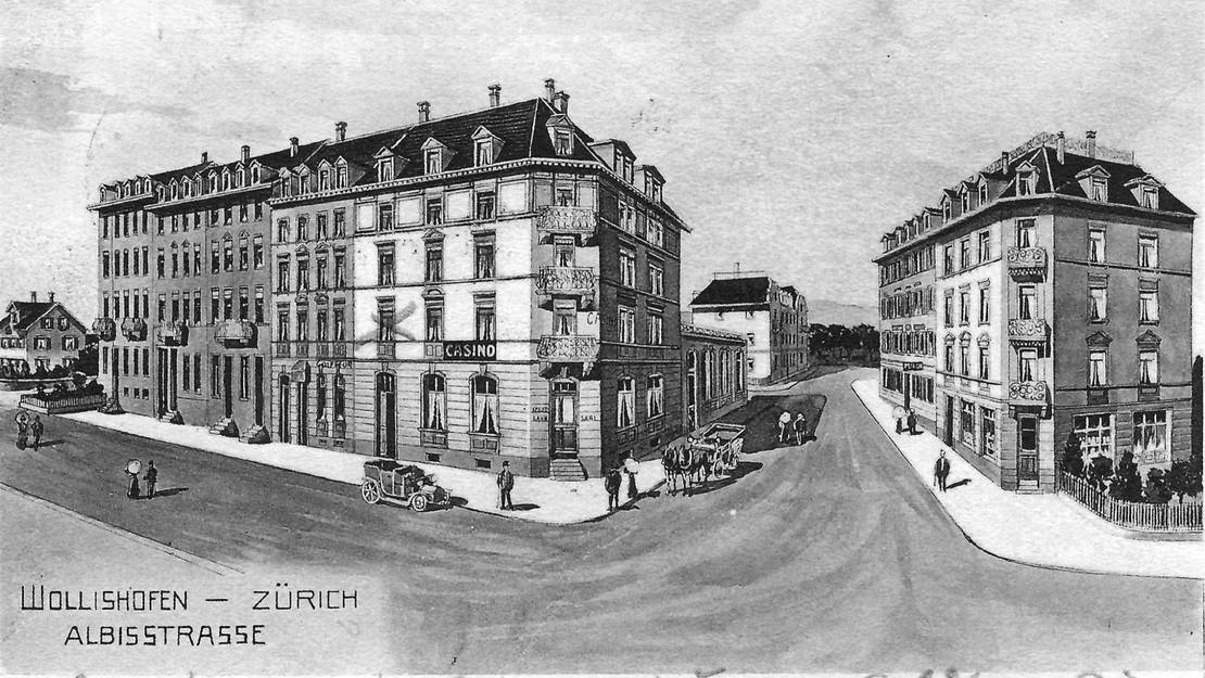 Nicht zuletzt dienten Postkarten zum Geldsammeln. Zum Beispiel für die katholische Notkapelle, die 1901 in einem bescheidenen Lokal an der Ecke Butzenstrasse/Albisstrasse eingerichtet wurde und die den Übernamen «Wöschhüsli» erhielt. Mehr darüber wird in einem der nächsten Blogeinträge zu erfahren sein. Ebenso wie über Örtlichkeiten mit so sonderbaren Namen wie «Erdbrust» oder «Rumpump», oder über die Rainstrasse, wo die «antizürcherische» Anordnung der Hausnummern vom rebellischen Charakter des früheren Bauerndorfs zeugt.